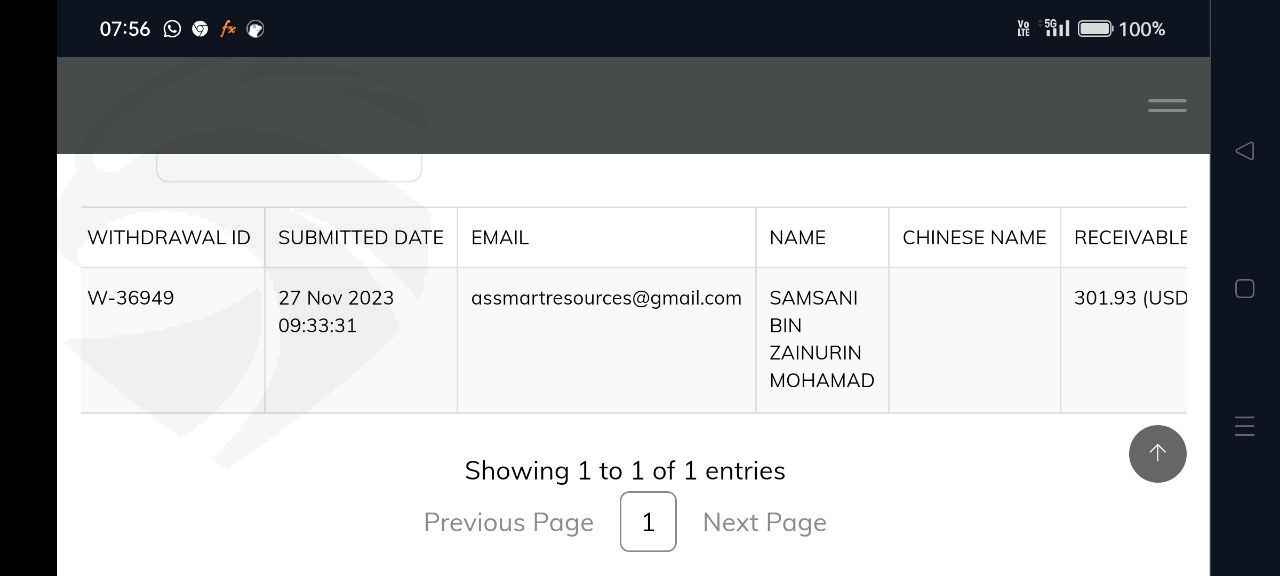 TO THE LONGASIA PARTY, I JUST SENT A MESSAGE VIA EMAIL (support@longasiagroups.com) MY FIRST WITHDRAWAL DATE ON (27/11/2023) IT HAS BEEN TOO LONG NOT TO ENTER THE WALLET UNTIL NOW, AND I ASKED BUT THE ANSWER FROM THE LONGASIA PARTY ON 3/7/2024 AMOUNT OF USD306.93 JUST ANSWERED ABOUT MY WITHDRAWAL THAT I REPORTED TO LONGASIA FOR A LONG TIME, FOR LONGASIA SAID 3 WORKING DAYS BUT UNTIL NOW IT HAS NOT ENTERED MY TRC20 WALLET, I HAVE BEEN WAITING FOR 7 DAYS SIR/ MADAM...PLEASE GIVE ATTENTION OR COOPERATION, BECAUSE I AM BEGGING TO USE THE MONEY AS AN EMERGENCY, PLEASE PLEASE...THANK.