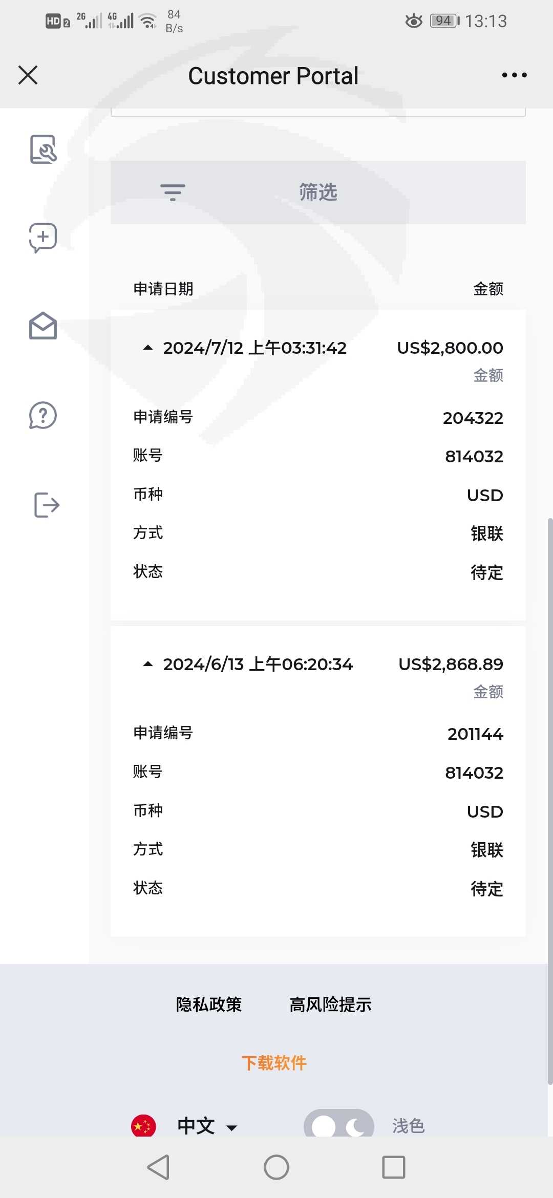 两个多月了,两次出金,一直是待定状态,救命的上啊!😭