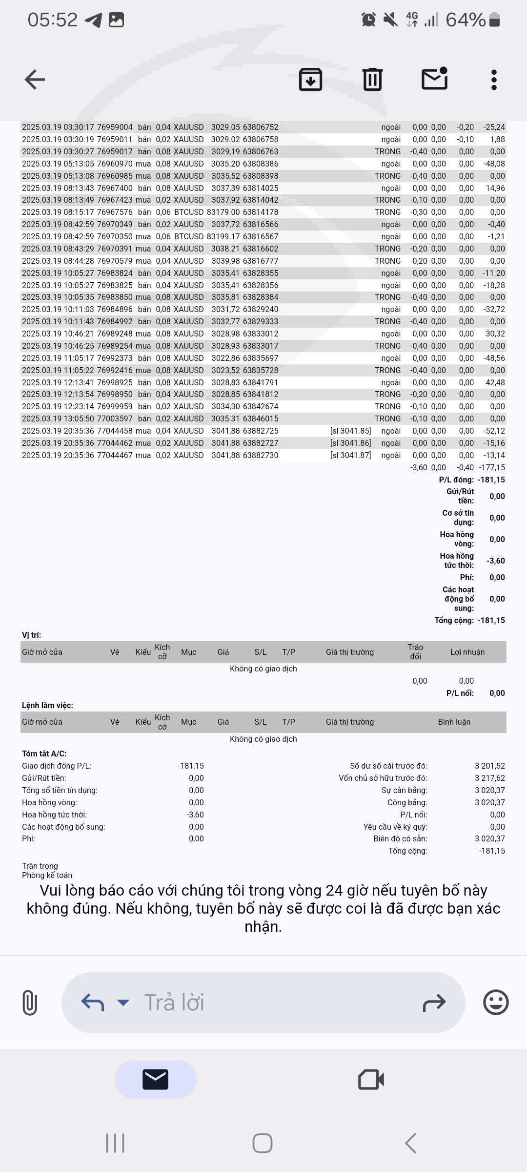 当用户没有违反每日下跌时,删除用户账户。每日下跌为6%,约为3201美元中的196美元。在输入价格时,我设置了止损+佣金为181美元。当价格在止损位正确扫描时,账户将被锁定。由于违反风险规则而发生变化。