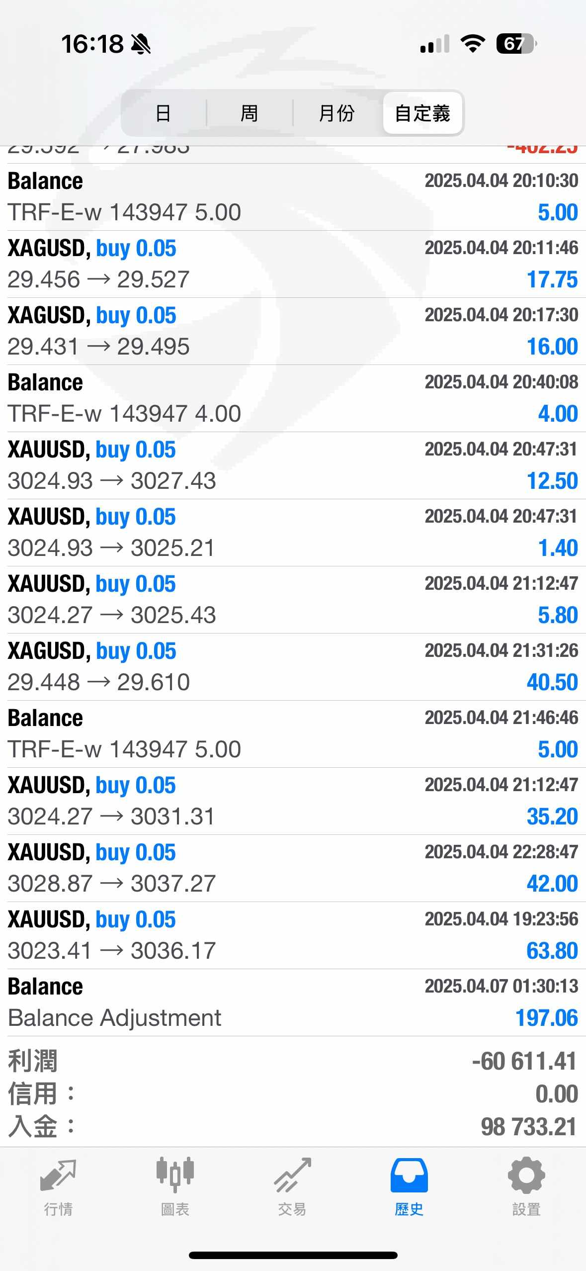 2025年4月7号星期一,早上,我账户持仓黄金加白银,其中主要是白银,仓位较轻,但也被爆仓,白银在27.94给我爆仓了,而GMI白银盘面最低才27.95,我感到不对劲,立马查看了其他几个大的平台公司报价,包括国内几个专业的财经类公司报价,价格都是28.2,更可笑的是GMI本公司其他账户报价白银28.2,就偏偏把我的账户给打爆仓,这一切事实明显,证据确凿,对此我联系了GMI公司,在等了几天后并未解决,我在GMI做了好几年,亏损止损几万美金,以前是认为自己的原因,但这次接连的事让我发现,这个平台并不像想象的一样正规