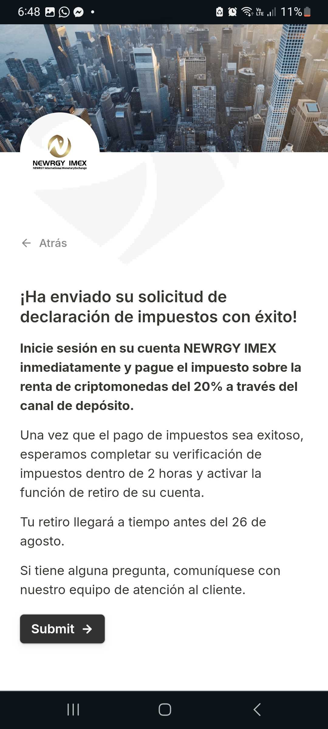 Hice mi deposito del 20% del supuesto impuesto, puede hacer mi retiro, pero es fecha y hora de que no lo he recibido en OKX. Solo quiero recuperar algo de lo que invertí, uno inicia en esto pensando en poder ayudarnos económicamente y no es justo que nos engañen de esa manera 🥲.