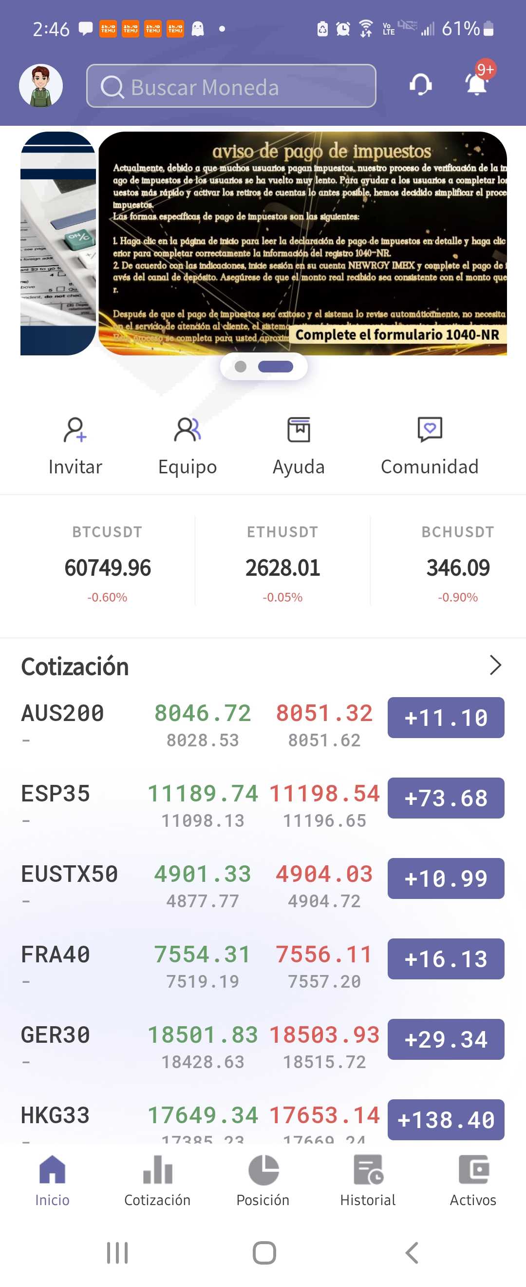 我被这个可疑和欺诈的“经纪人”诱导参与了金额为 1400 美元的投资。然而,尽管一些用户声称他们已经成功撤回,但就个人而言,该平台从未允许我这样做,而且时间也不允许。提现进展缓慢,承诺2024年8月16日即可提现,但借口已在纽约证券交易所上市,据说美国ISR机构顺便要求所有用户缴纳相关税款。平台要求我们缴纳ISR所谓的税款,并以冻结资产为威胁,并在今年8月26日前窃取资产进行逃税,紧接着,这些卑鄙可恶的骗子就消灭了我们的“利润”。站点网站,因此可以访问应用程序帐户 NEWRGY IMEX,我一定会全面投诉,小心这些小偷。