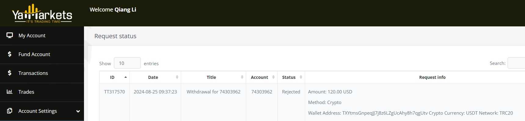 Yamarkets directly rejected my withdrawal without any explanation, and I received no response to my email.