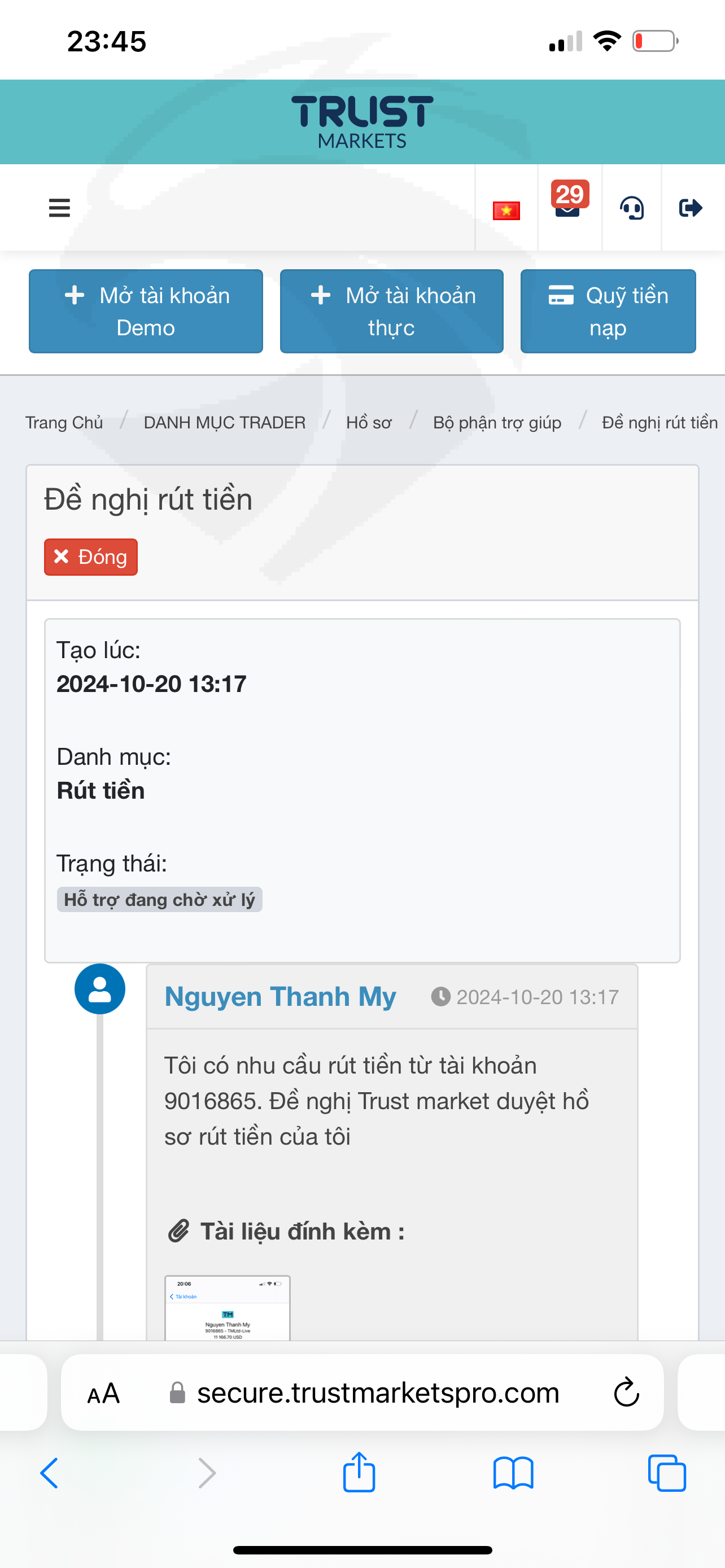 Bọn bên sàn Trust Market cố tình lừa tôi, mở margin của tôi lên quá cao làm tài khoản tôi không còn để không phải trả tiền cho tôi.
