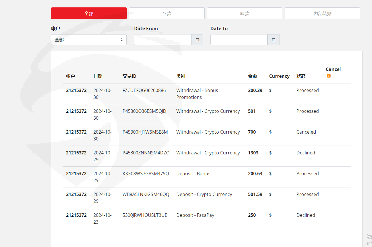 找了QQ客服官网注册,我下单后一直赚了,后面全部平仓了,觉得还会涨,继续下单多,还是赚!我以为运气实力都有了,但是出金的时,利润不给出,只给出本金,耗时那么久,一封邮件说我套利,不给利润,我以为2015年铁汇潜逃,这次复出应该正规点,还是老样子!我呵呵了,没有证据就不让出,我有证据证明自己交易,也没找我要,他就是不想给