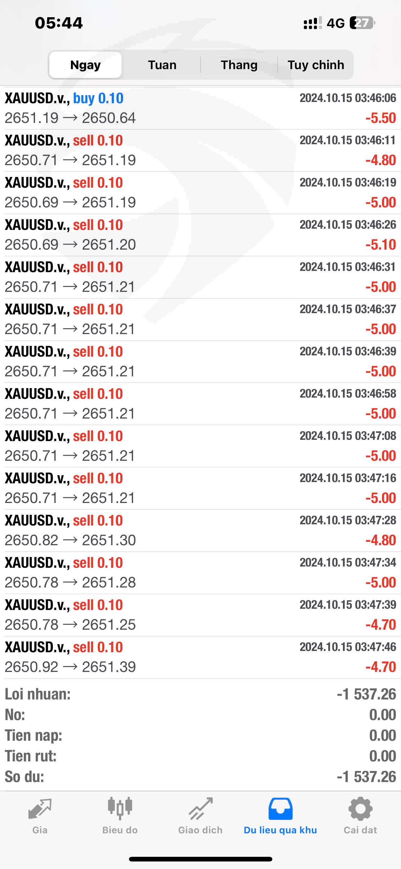 TÔI NGHI NGỜ NGHIỆP VỤ IB SÀN NÀY YẾU KÉM, ĐƯA LỆNH NHẦM MỤC ĐÍCH LÀM ÂM VỐN, 95% LỢI NHUẬN LÀ TỰ TÔI ĐI LỆNH. 3 GIỜ SÁNG HÔM ĐÓ TÔI KHÔNG GIAO DỊCH NHƯNG TÀI KHOẢN CỦA TÔI PHÁT SINH GIAO DỊCH LÀM ÂM VỐN CỦA TÔI. TÔI ĐÃ GỬI 4 MAIL ĐẾN BỘ PHẬN CHĂM SÓC KHÁCH HÀNG NHƯNG ĐẾN HIỆN TẠI HƠN 1 THÁNG QUA VẪN CHƯA NHẬN ĐƯỢC MAIL PHẢN HỒI.