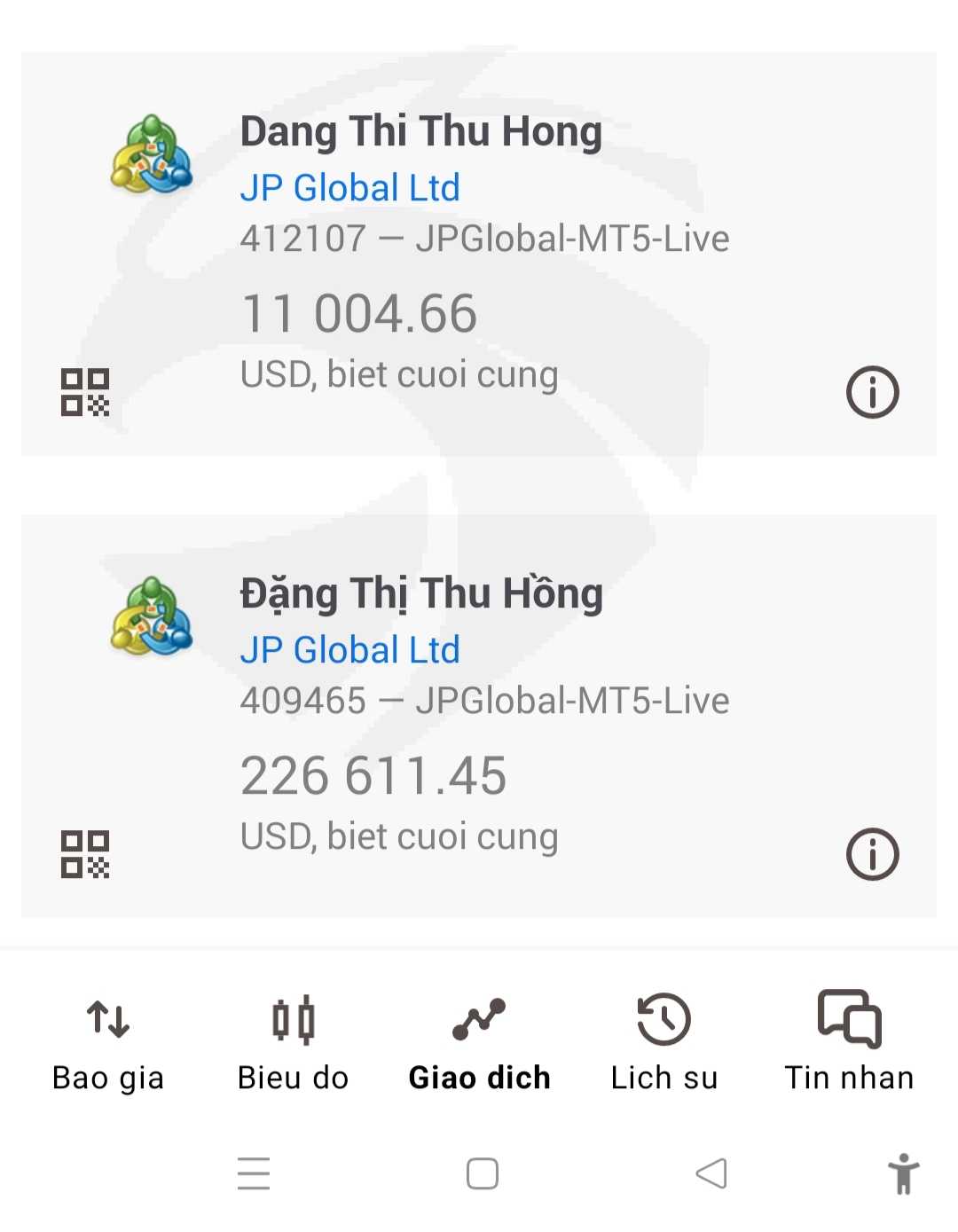 Sàn môi giới JP Pro được đổi từ sàn JP Exchane từ 23/8/2023, ngày 4/11/2024 tk tôi bị sàn khoá cổng sàn và MT5, số tiền nạp vào cho 2 tk trên 1,4 tỷ đồng, tôi nghĩ đó là hoạt động của nhóm người lừa đảo vì tui gửi bài tố cáo ngàythì sáng 27/11/2024 các tài khoản Zalo trong nhóm đầu tư của JP Pro đều bị xoá, khoá hoặc thay đổi từ khách hàng sang người của công ty. Cũng có bạn Duy Anh từng nói với tôi nạp 25-30k$ để cứu tk là ngày 2/11/2024 chắc chắn vàng sẽ giảm và đúng là vàng giảm thật nhưng 2 tk của tôi cũng khoá và số tiền còn lại trong tài khoản của tôi cũng mất trắng. Tôi chỉ mong cơ quan có thẩm quyền và pháp luật nước ta nghiêm trị những hành vi lừa đảo chiếm đoạt tài sản của những người đã đỗ mồ hôi, chảy nước mắt, đôi khi có đánh đổi cả máu hay mạng sống để có được. Trong thời gian vừa qua tôi thật sự rất bế tắt chỉ cầu mong pháp luật nước ta giúp cho tôi nói riêng và cho những nhà đầu tư khác nói chung được lấy lại số tiền đã mất. tôi chân thành cảm ơn