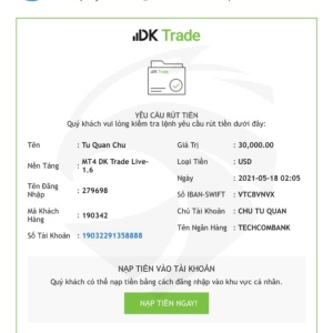 我在 5/52021 下了我的第一个取款订单,从那时起我尝试下许多其他取款订单,但没有一个被处理。支持部门DK Trade给出了许多延迟的理由,截至今天,他们表示不再支持。目前我账户中的余额超过 30000 美元,直到现在尝试取款近 1 个月后,我仍然没有收到一分钱。DK Trade是一个诈骗平台,挪用投资者的钱。