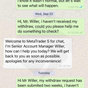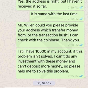 于是我尝试使用部分金额第二次提现,9/14我申请提现3465.38,到今天9/30为止,依然什么都没有收到。跟客服联系开始就让我等待,后来就不回复了。